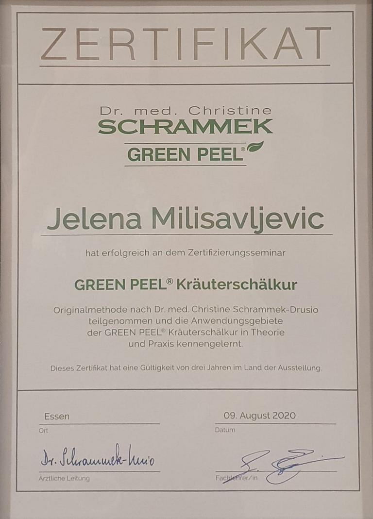 Ich beherrsche unter anderem das Green-Peel®-Verfahren und unser Kosmetikstudio ist offiziell für Green-Peel®-Behandlungen zertifiziert. Ein weiterer wichtiger Bestandteil meiner Ausbildung war zudem der fachgerechte Umgang mit apparativen Kosmetikgeräten.